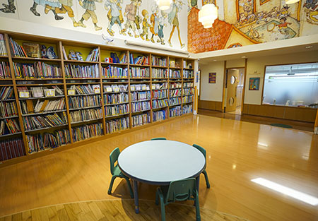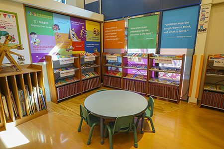 ● 知識的魔法屋: 陽光灑落的挑高圖書館,讓孩子沉浸在歐美進口的童書繪本中,讓中外師與孩子在故事中展開想像的翅膀。